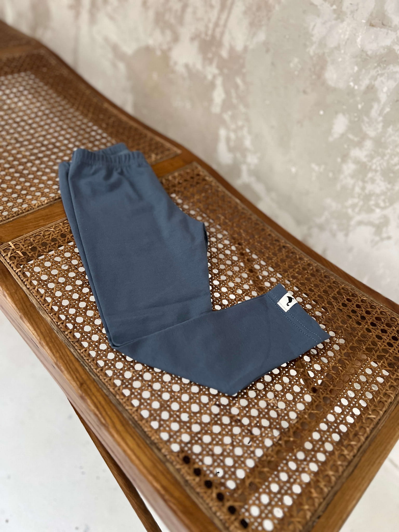 Bawełniane legginsy dziecięce w pięknym jeansowym kolorze.