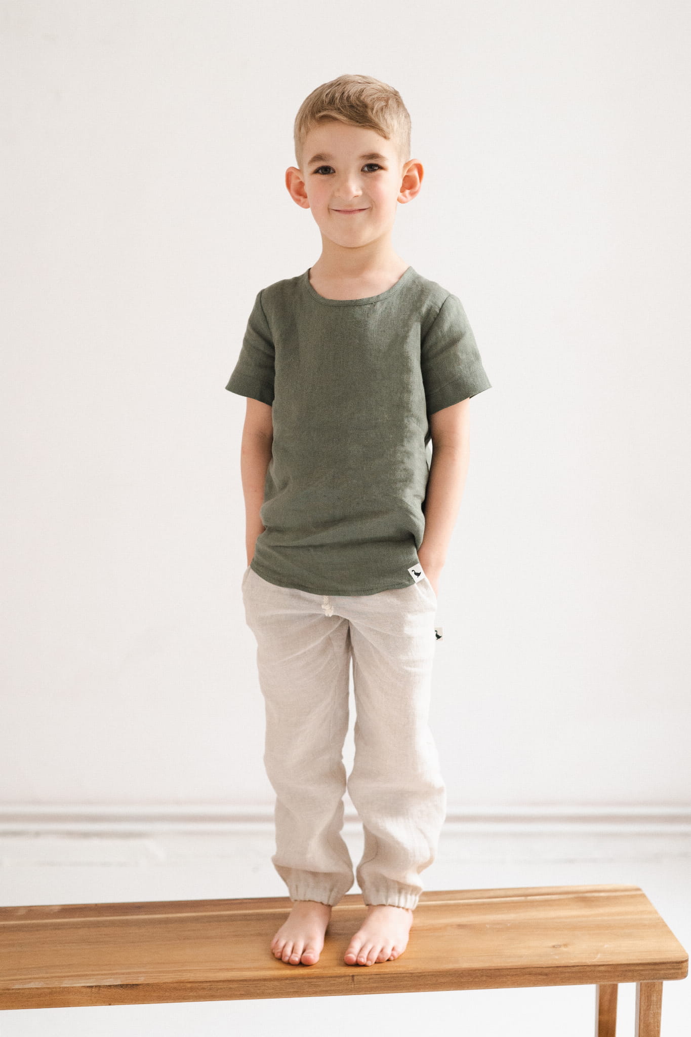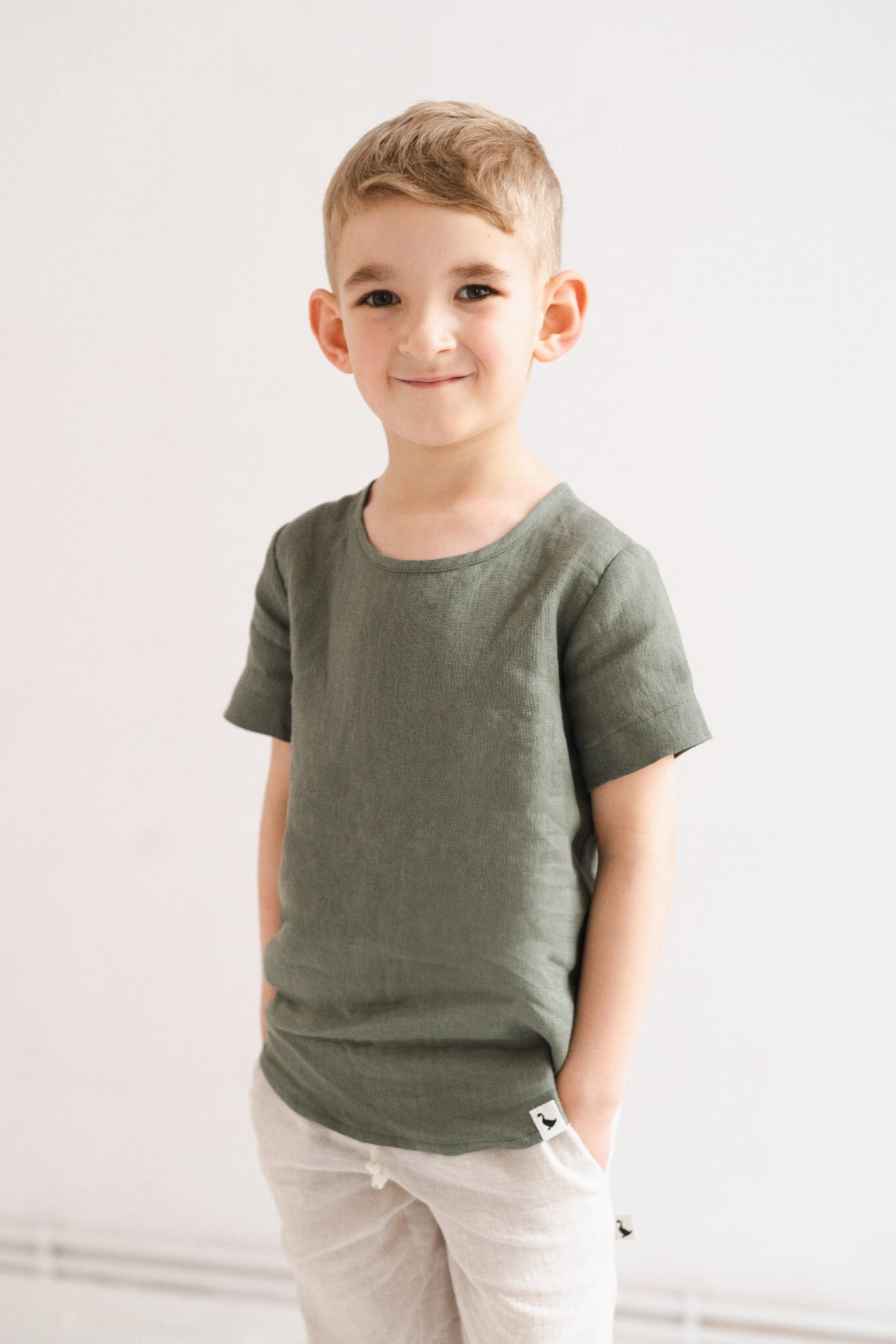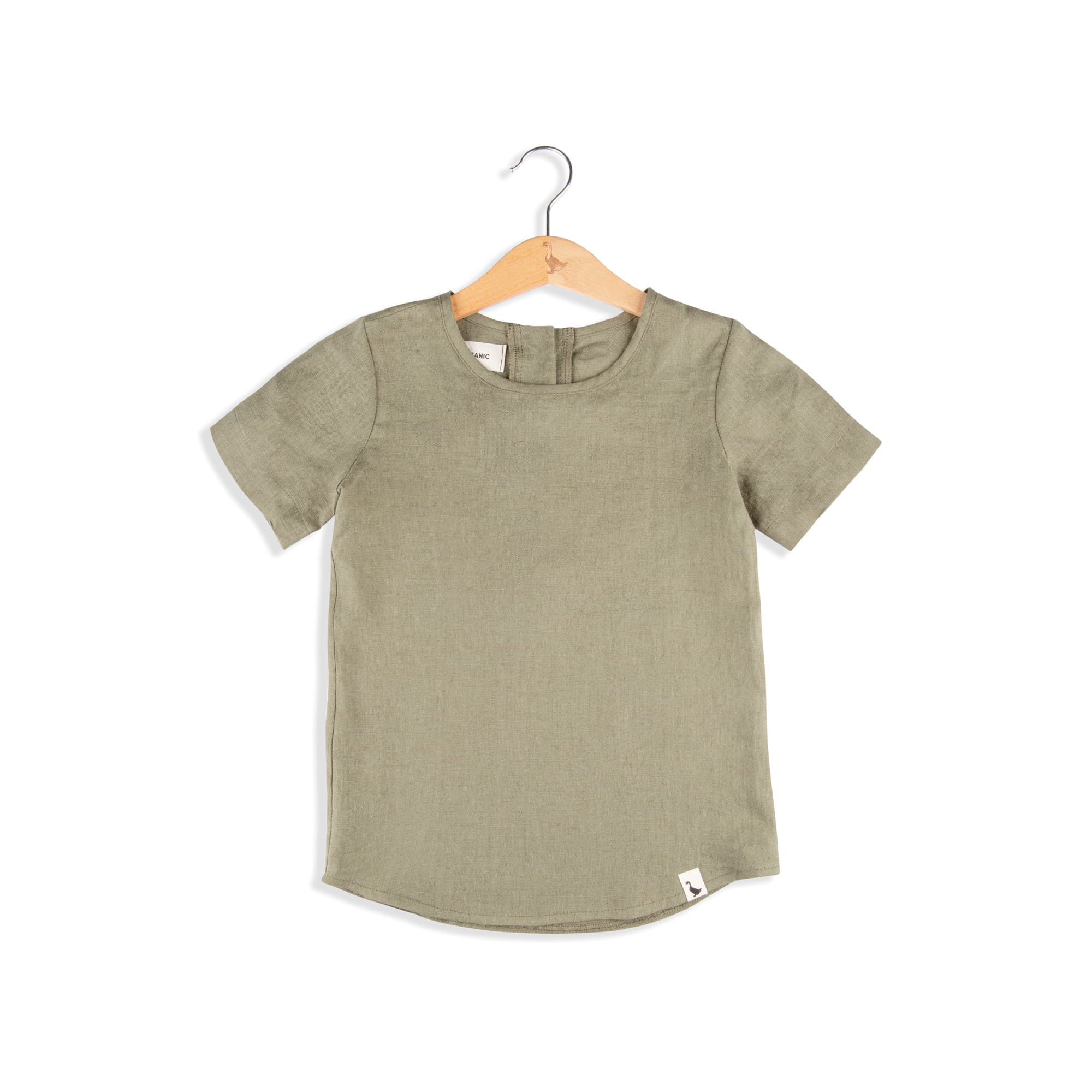 T-shirt wykonany jest z miękkiego, certyfikowanego lnu, przez co idealnie sprawdzi się w letnie, upalne dni.